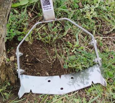 Démonstration sur le stand. Invention et fabrication 100% Française : Le sarcloir, primé au concours Lépine 2017, permet de couper les herbes indésirables dans les endroits difficiles d'accès par les autres sarcloirs.